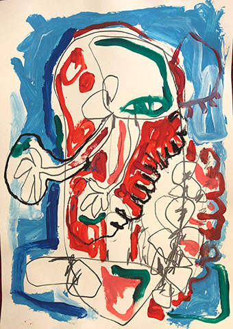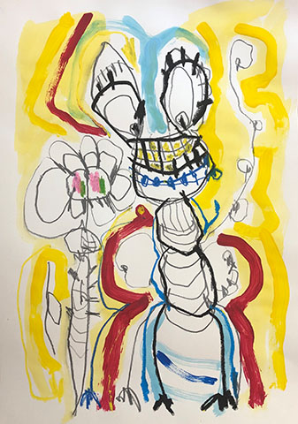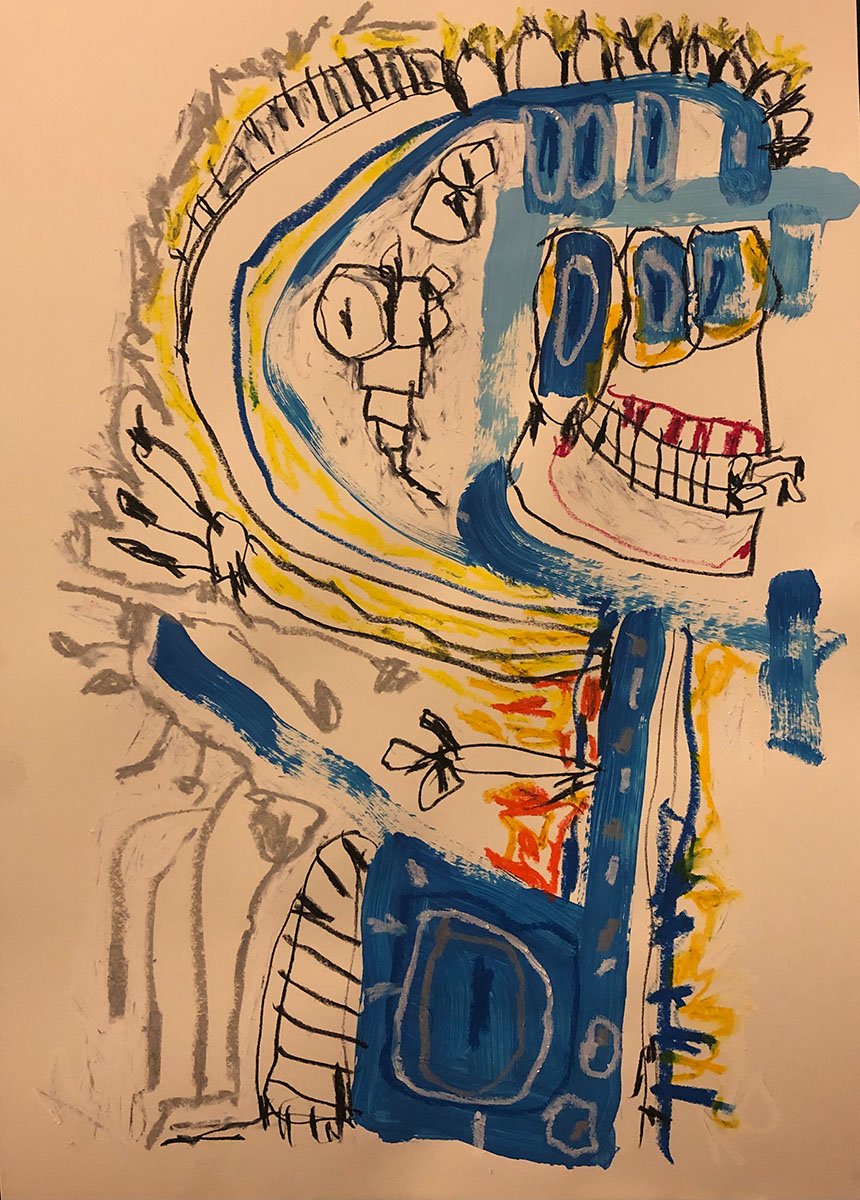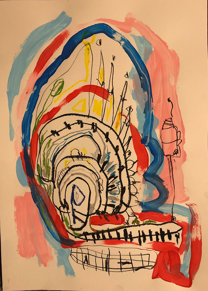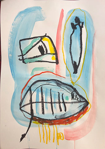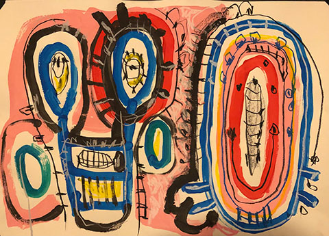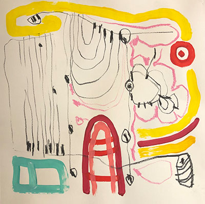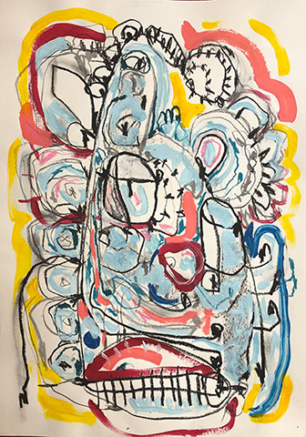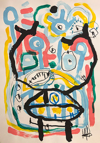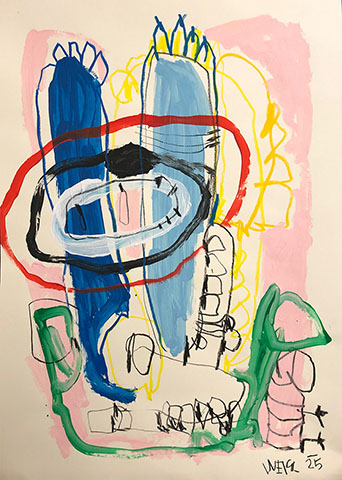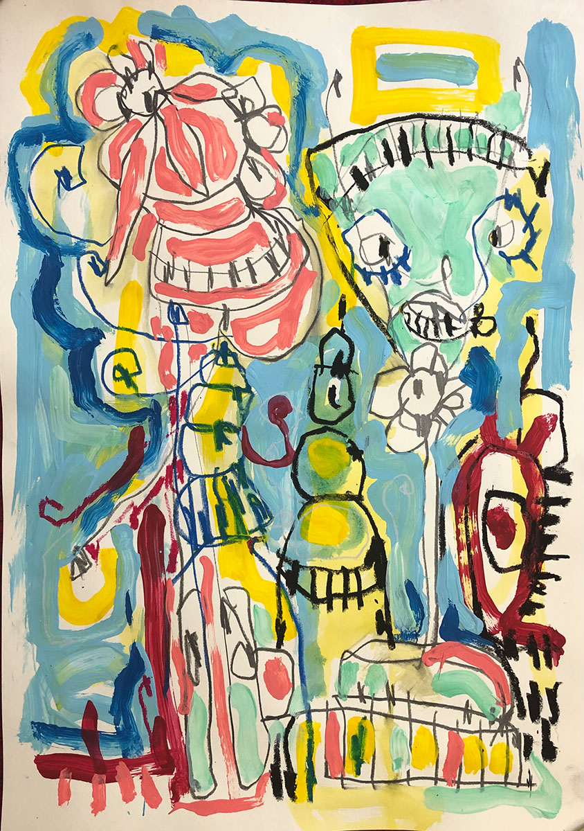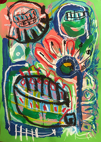 Acrylic, Oil pastel, Felt Pen on paper
