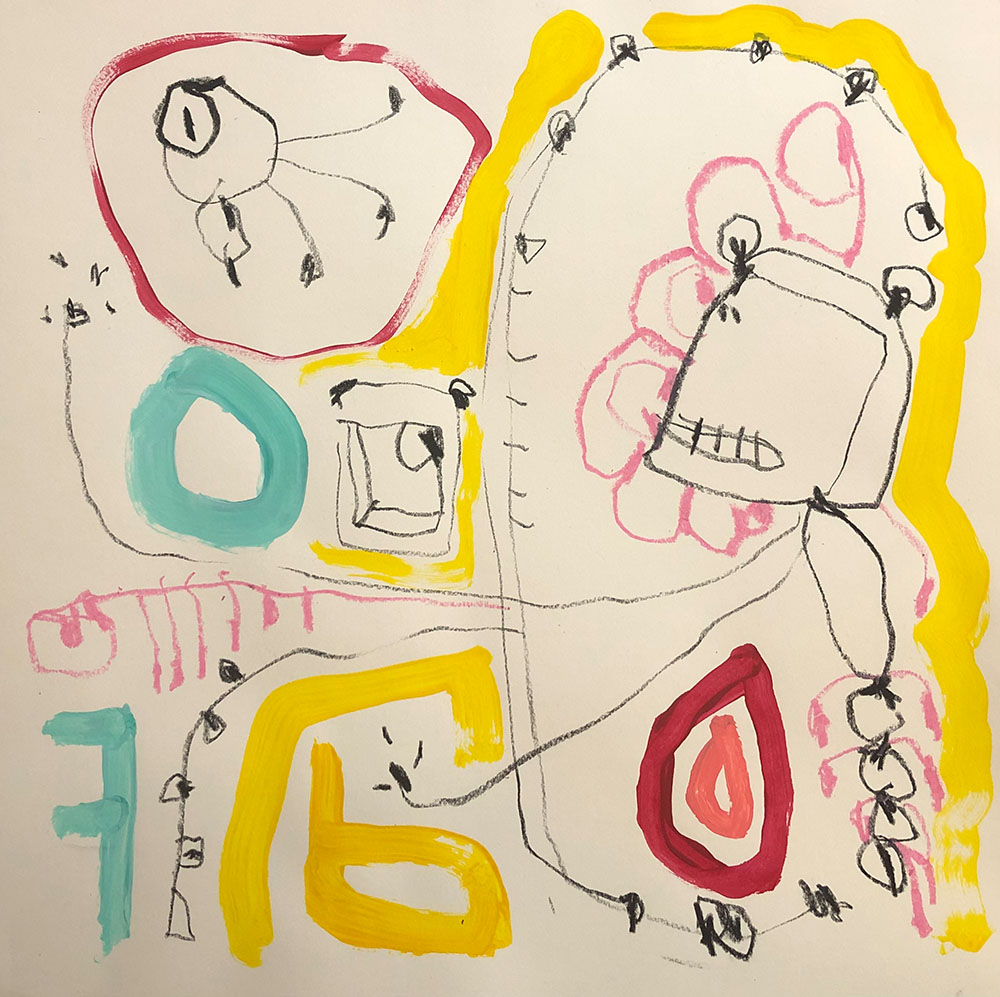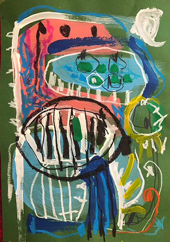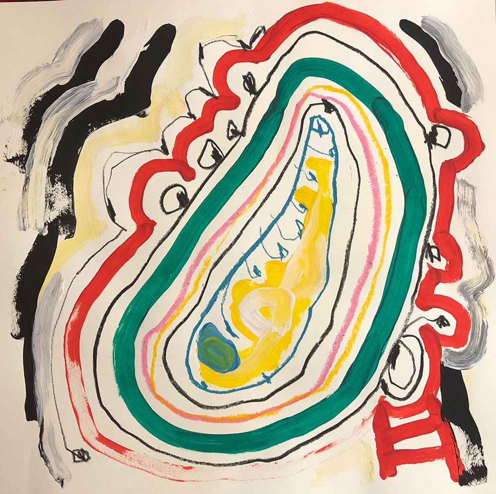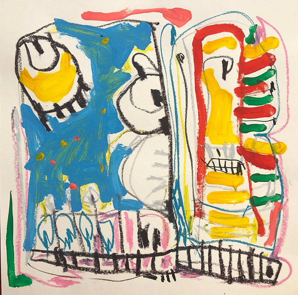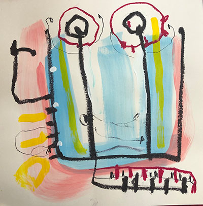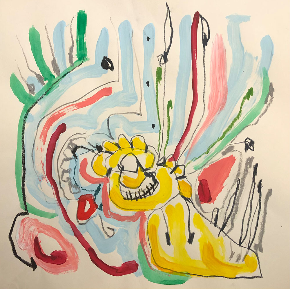 Acrylic, Oil pastel, Felt Pen on paper