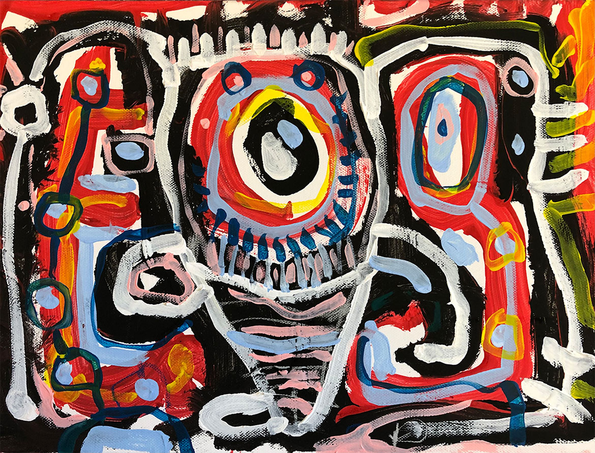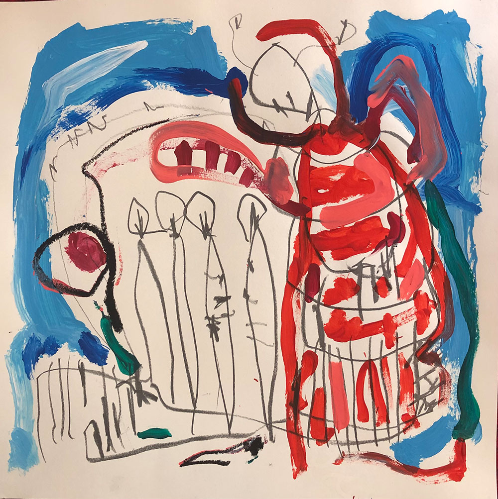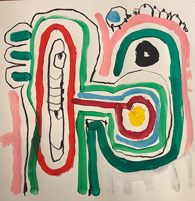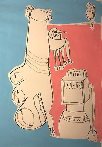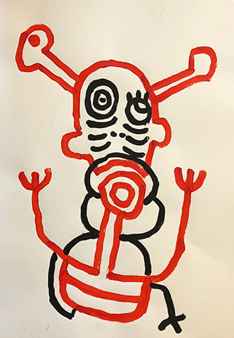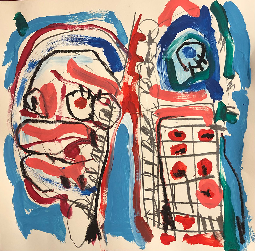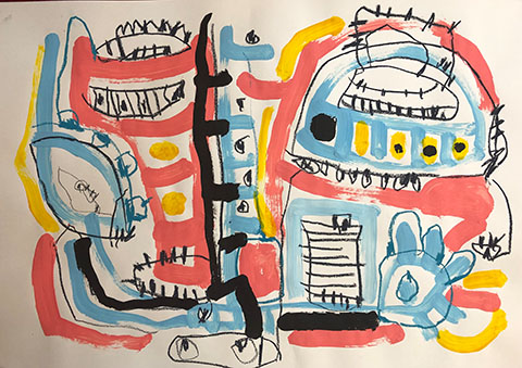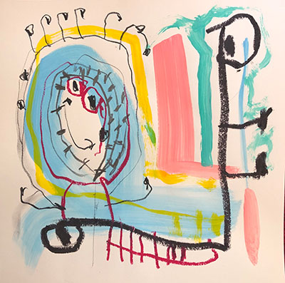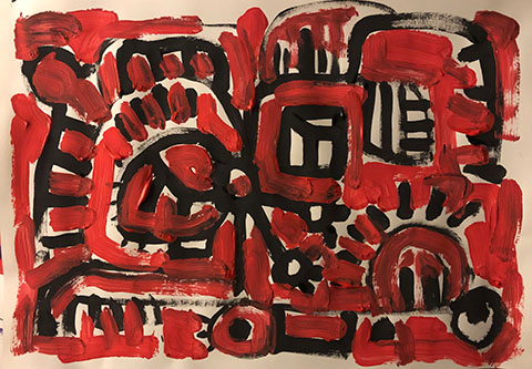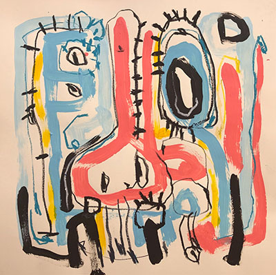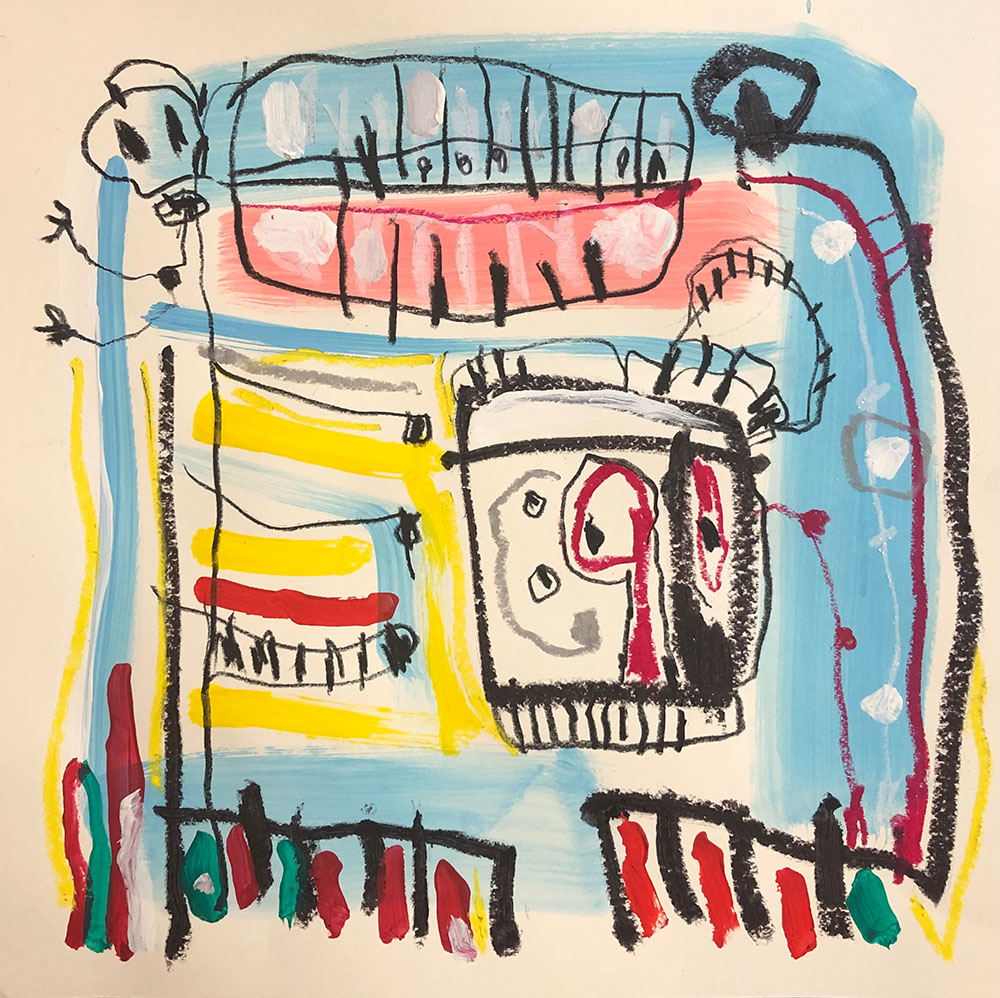 Acrylic, Oil pastel, Felt Pen on paper