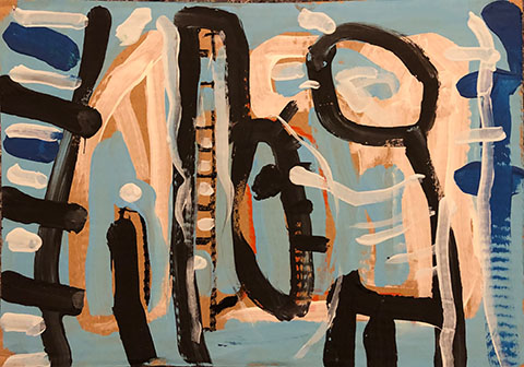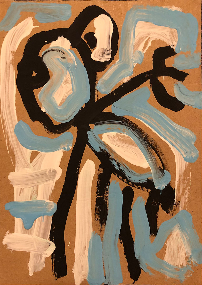 Acrylic, Oil pastel on cardboard