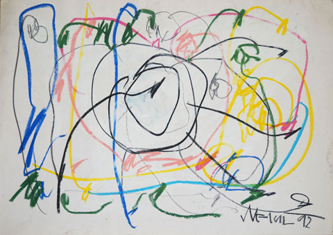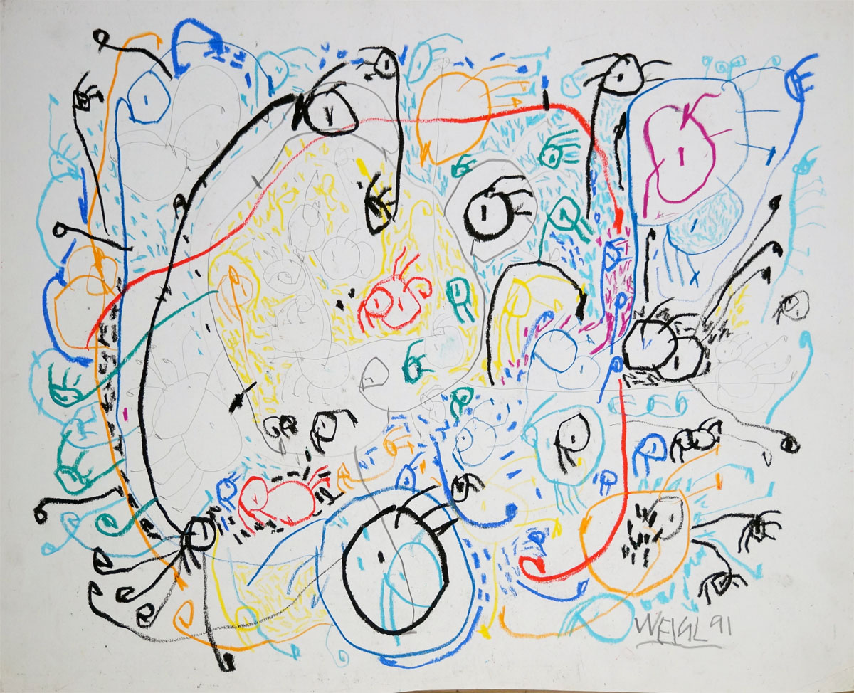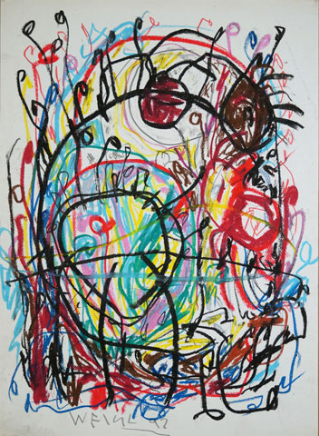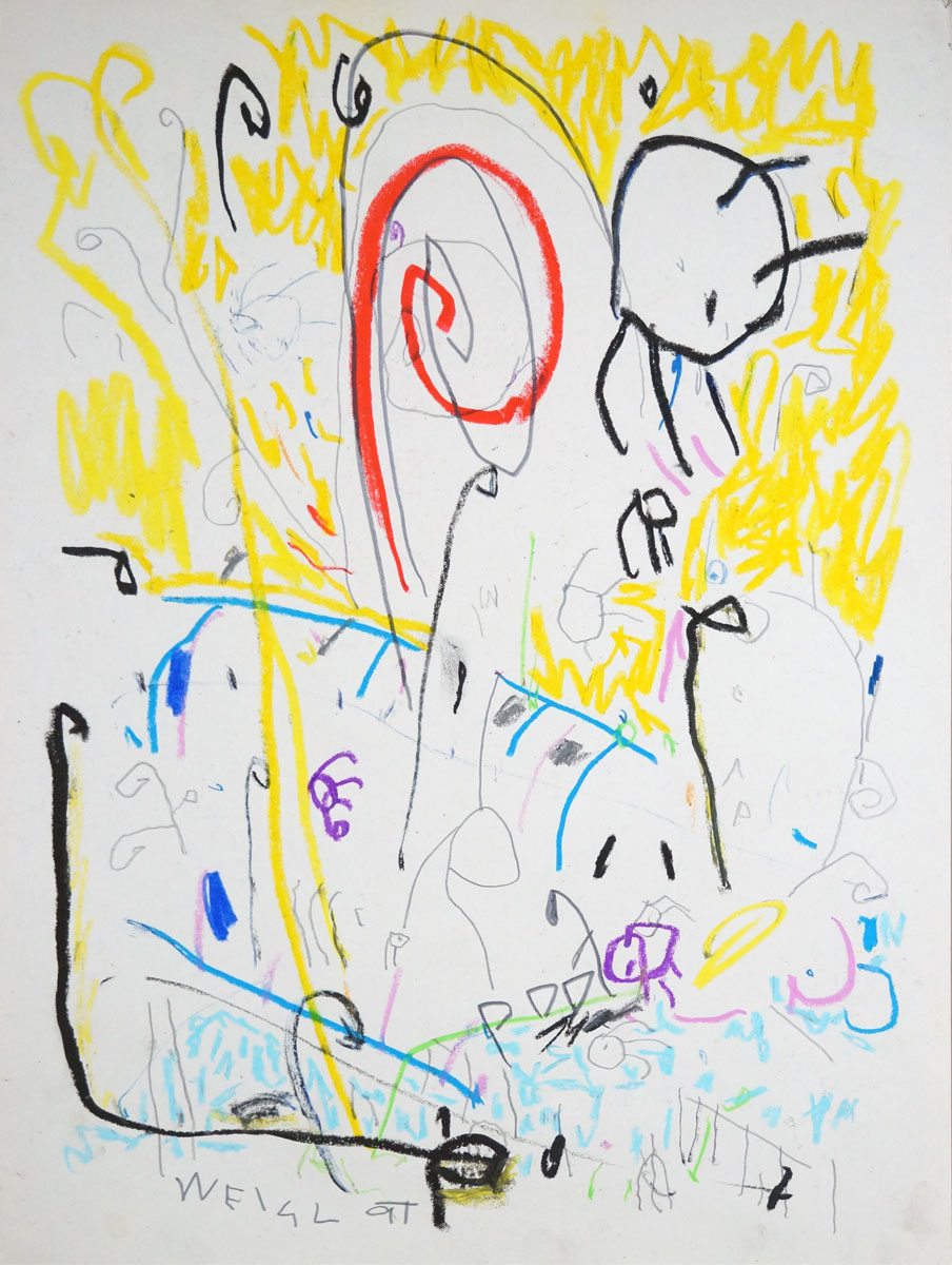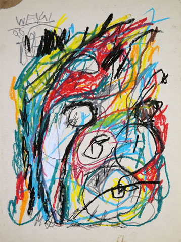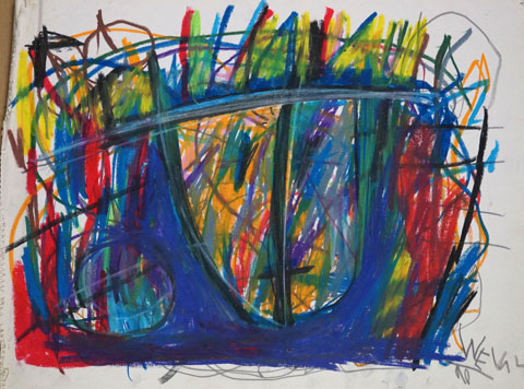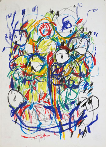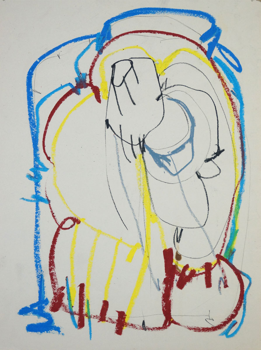 Oil pastel, pencil on paper