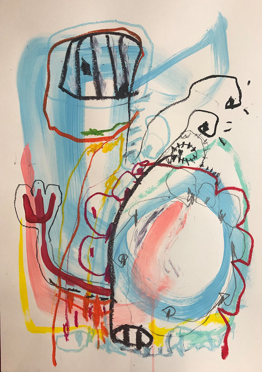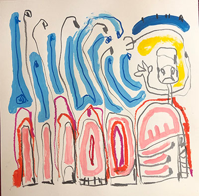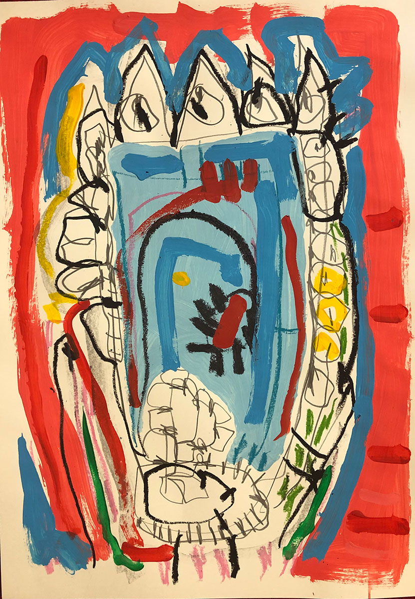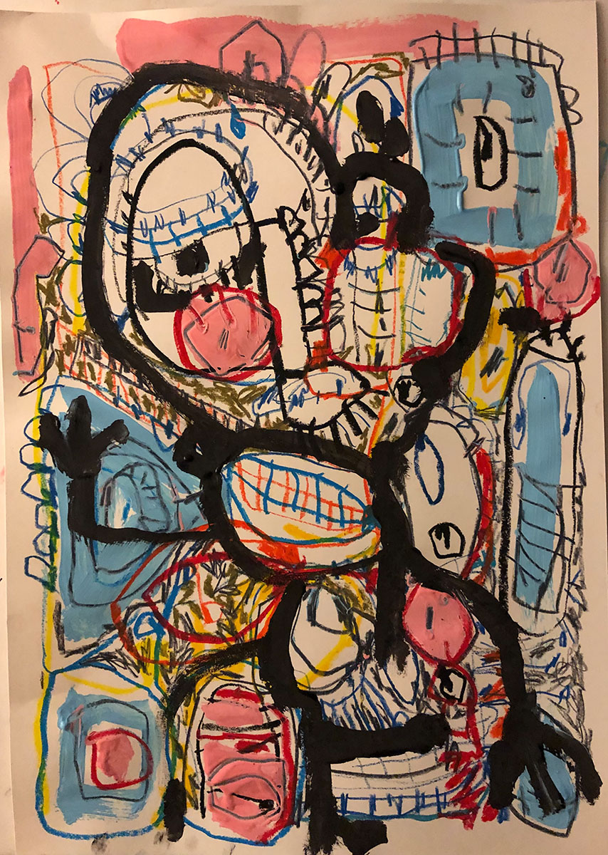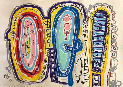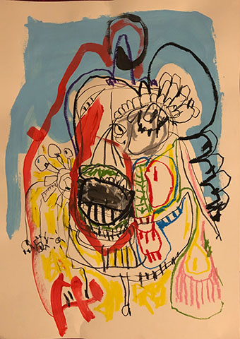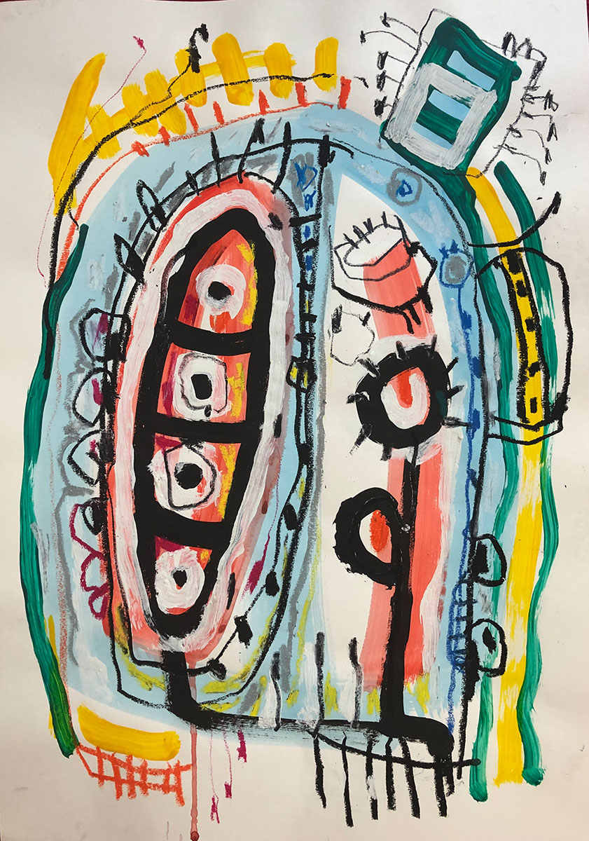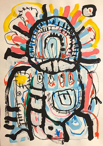 Acrylic, Oil pastel, Felt Pen on paper