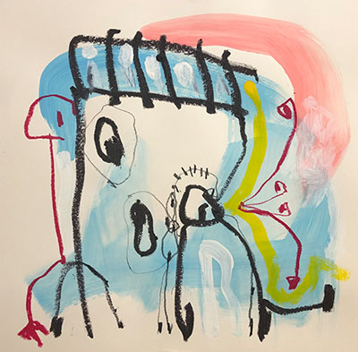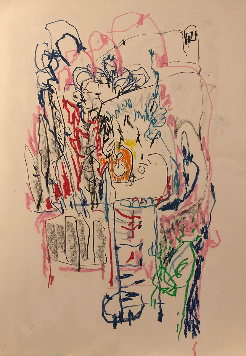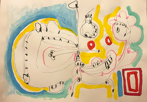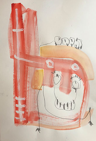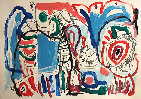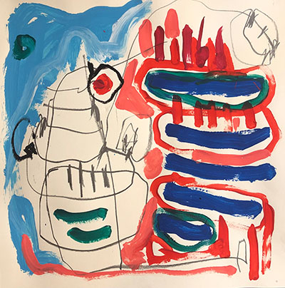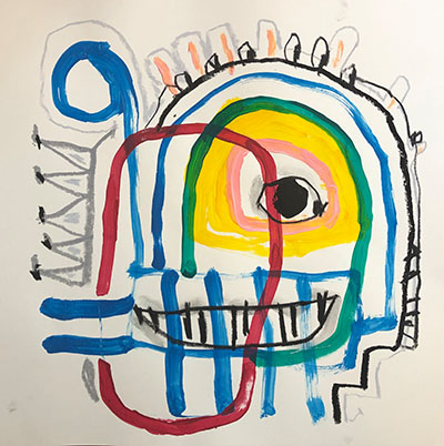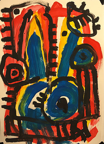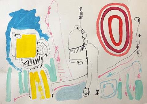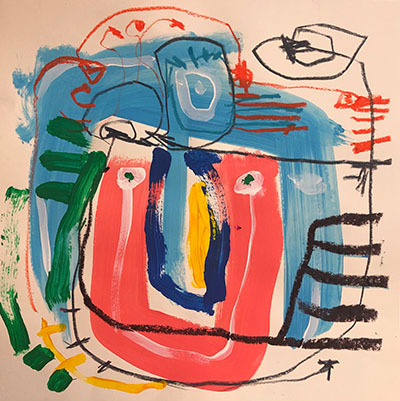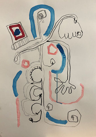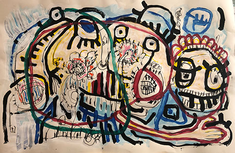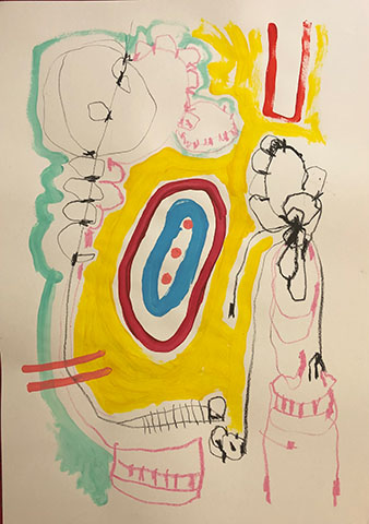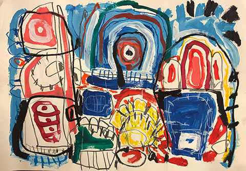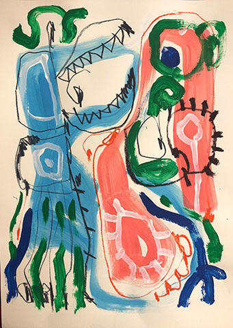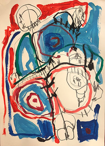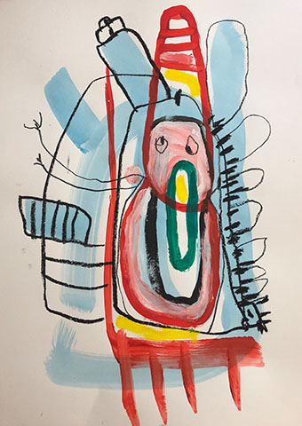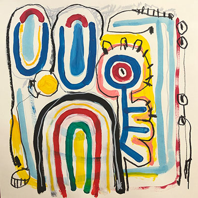 Acrylic, Oil pastel, Felt Pen on paper