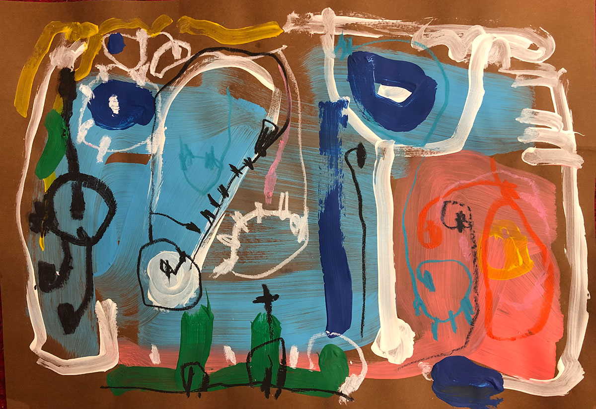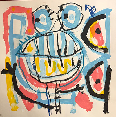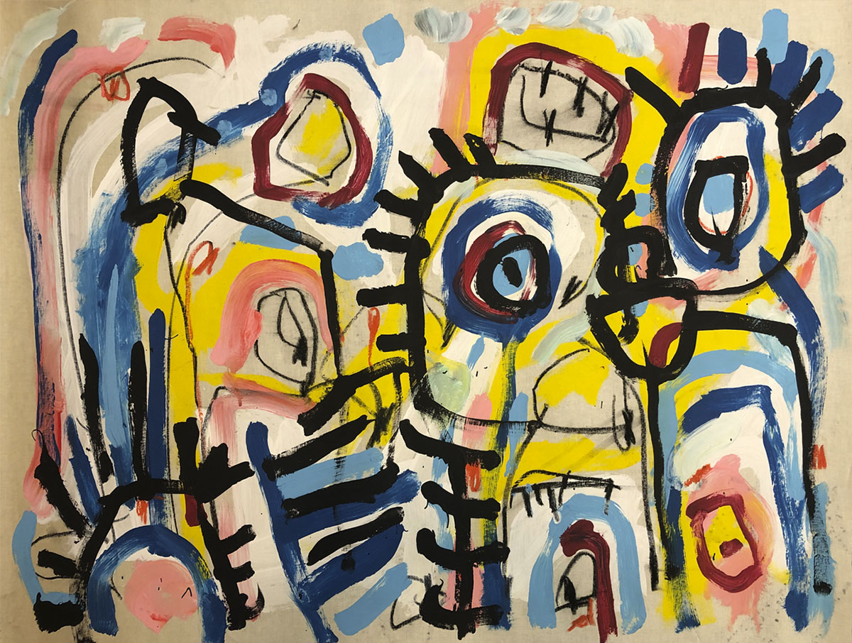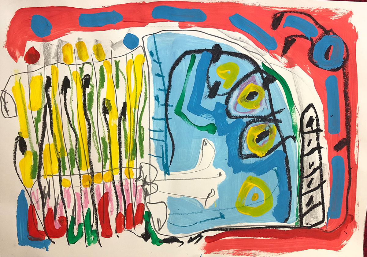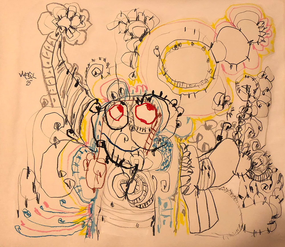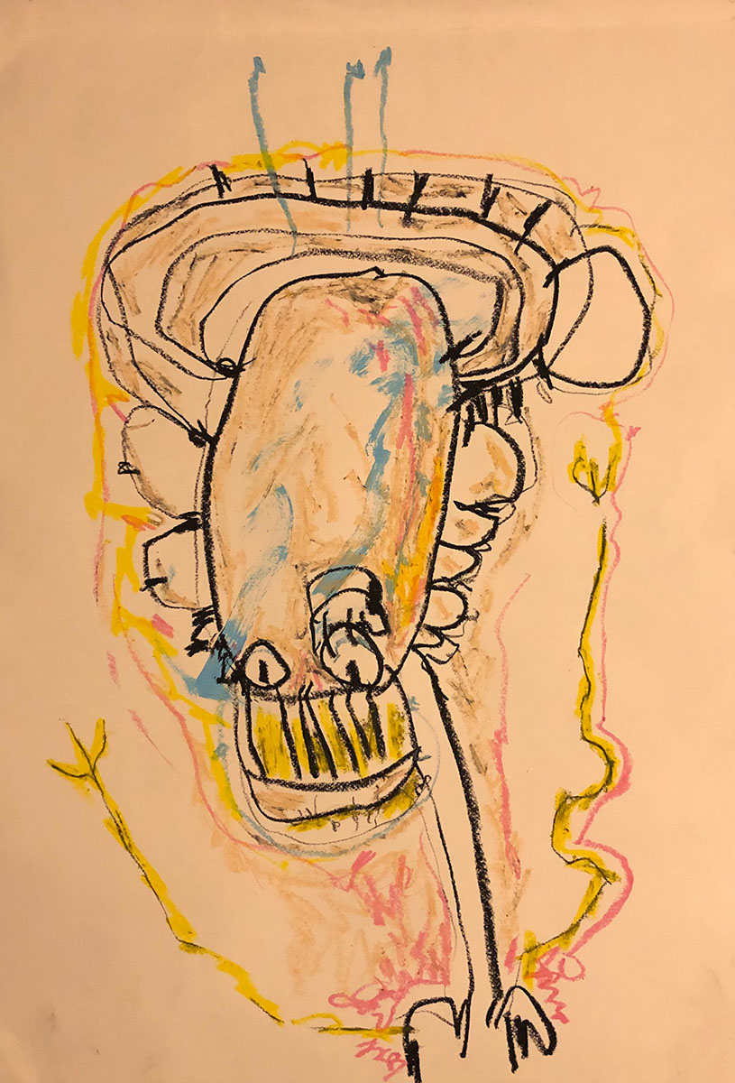 Acrylic, Oil pastel, Felt Pen on paper