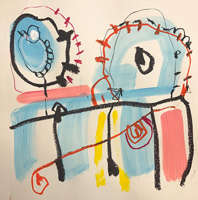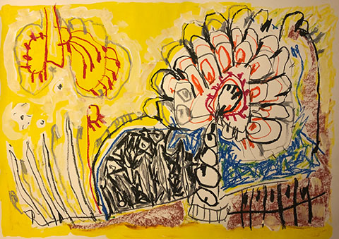 Acrylic, Oil pastel on paper