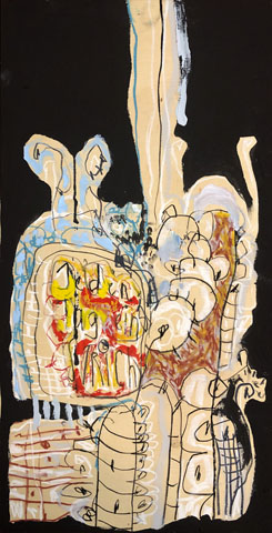Acrylic, Oil pastel on cardboard