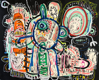 Acrylic, Oil pastel on canvas