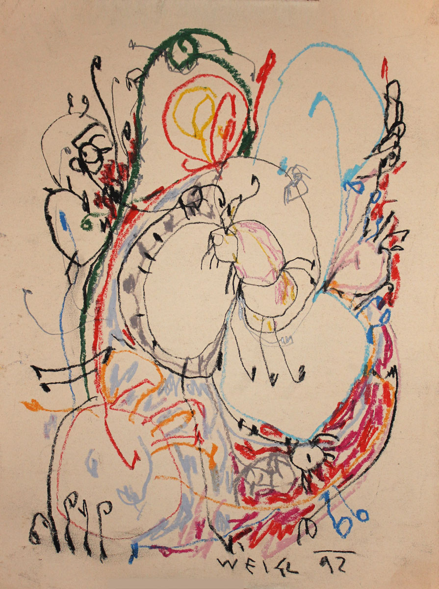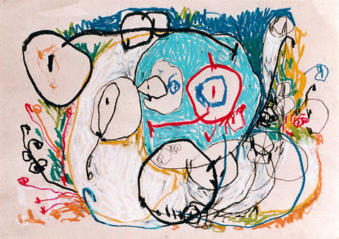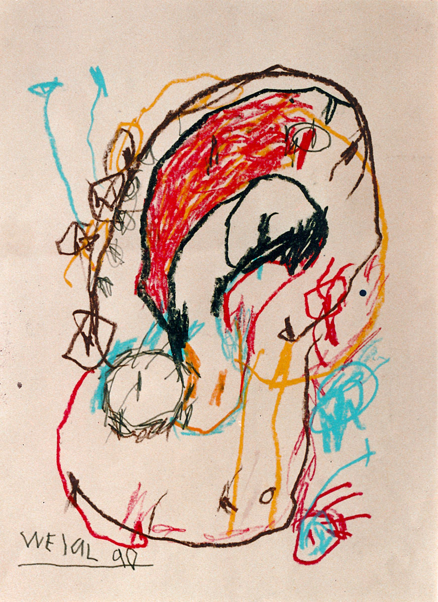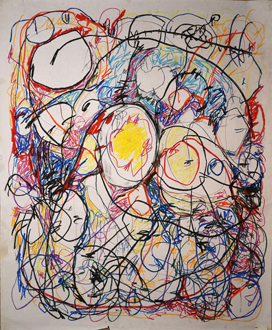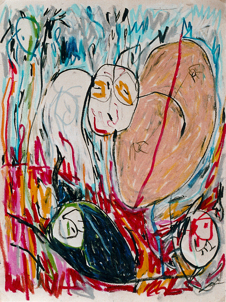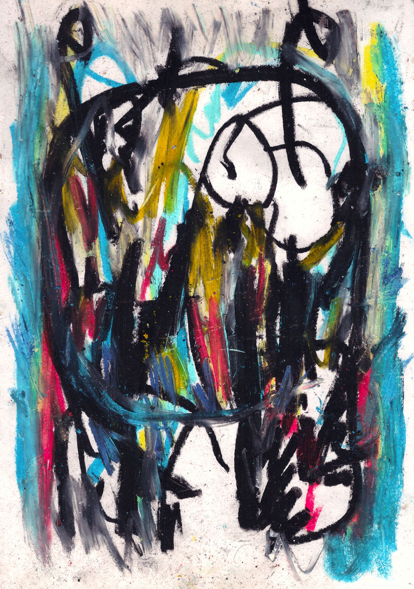 Oil pastel, pencil on paper