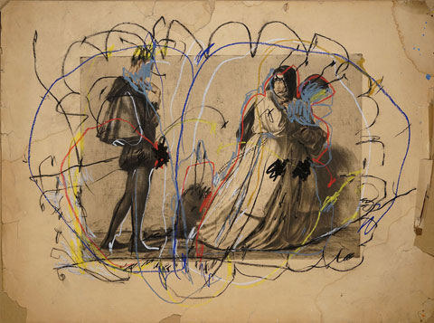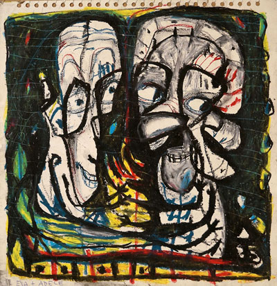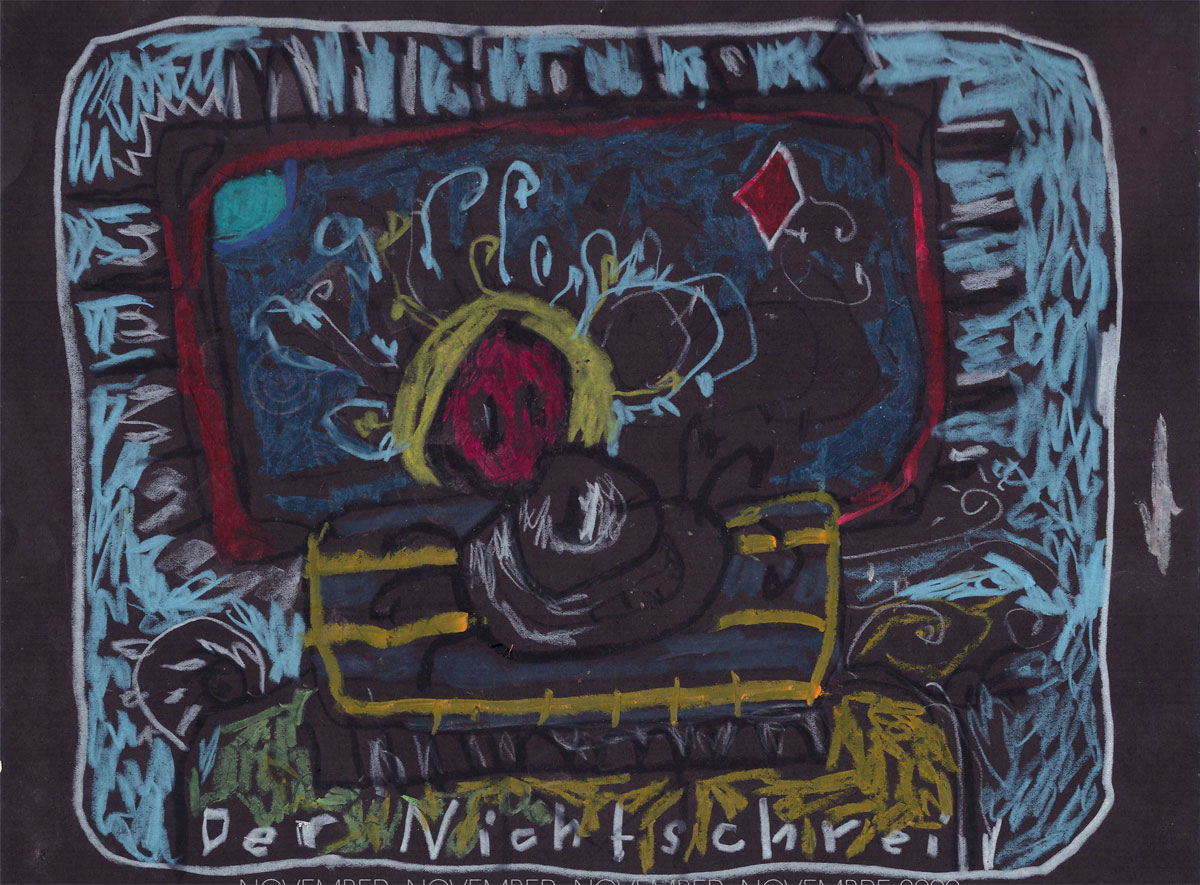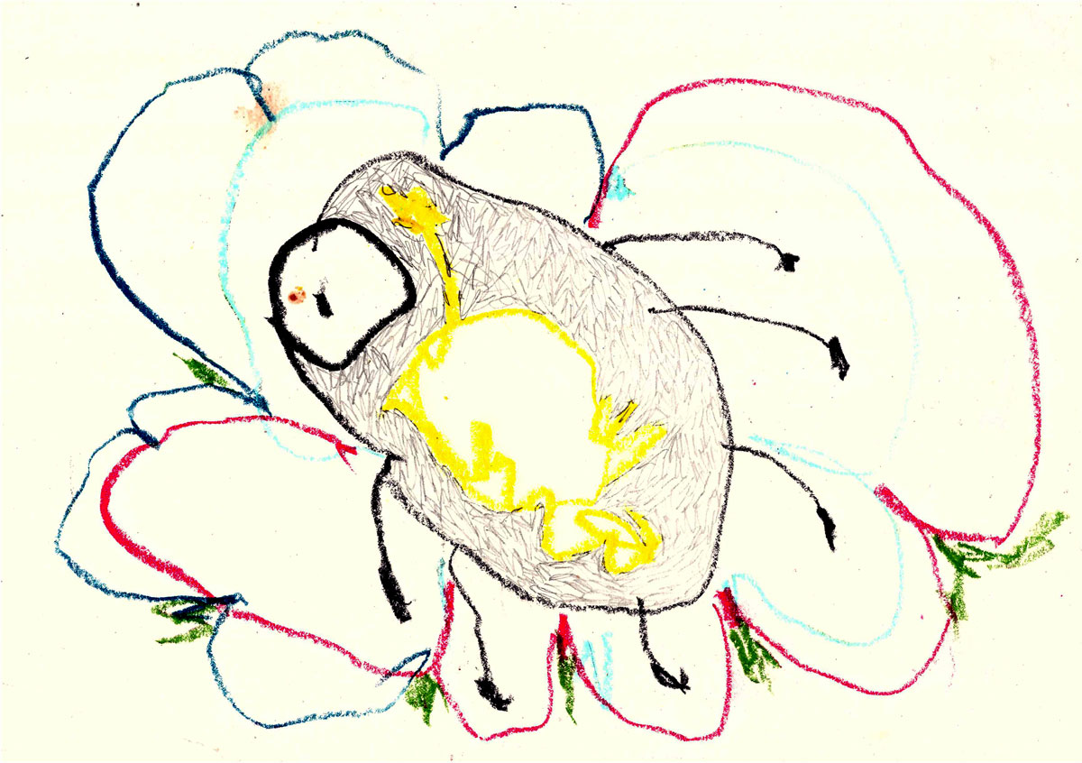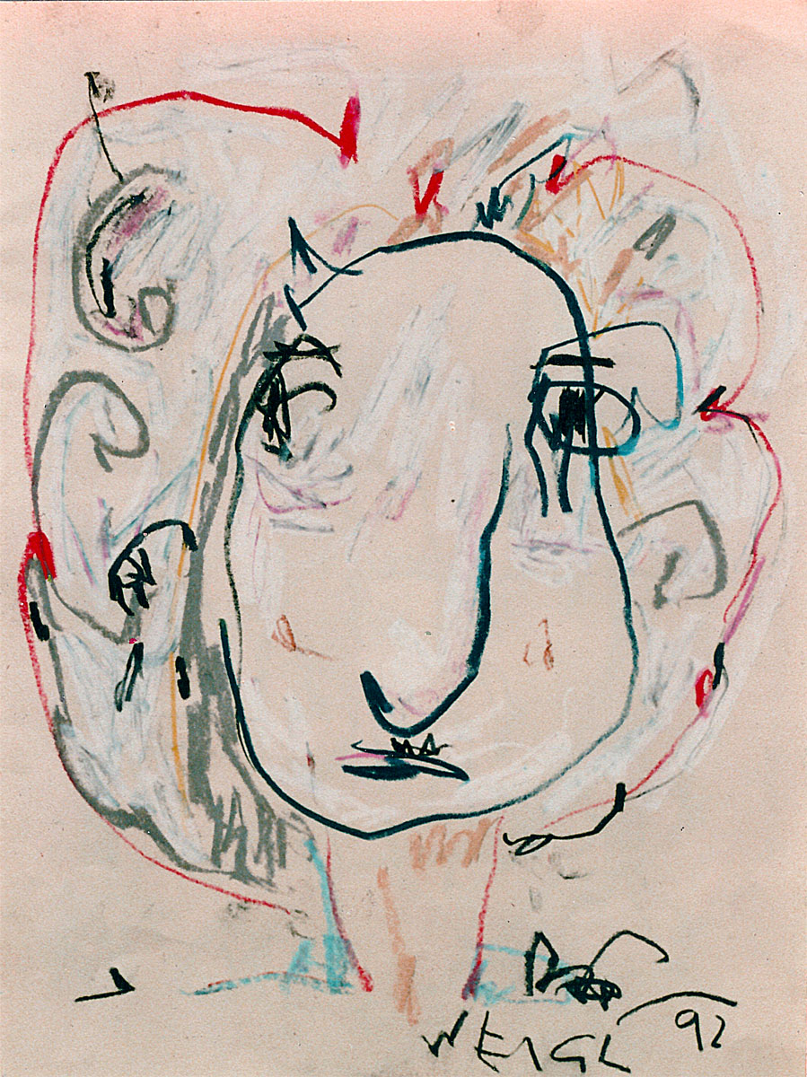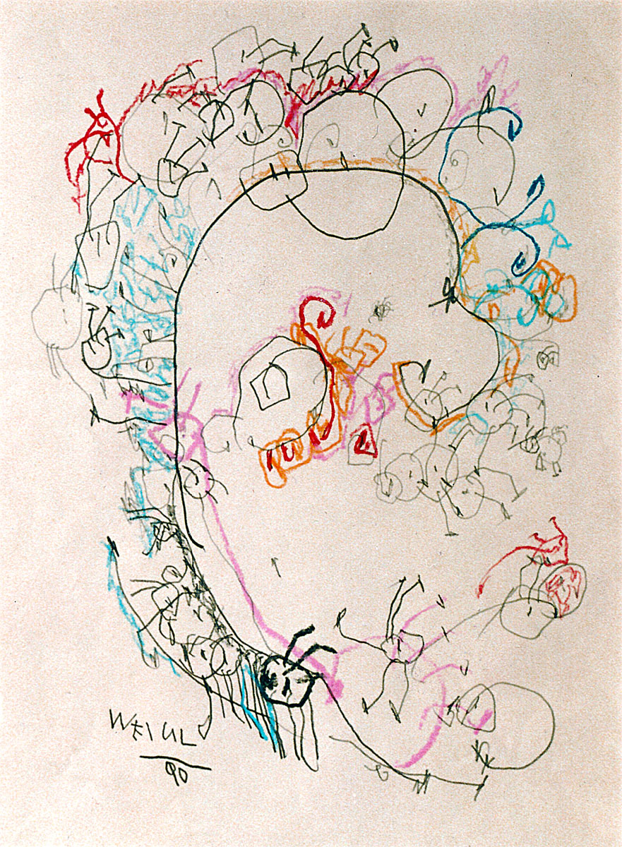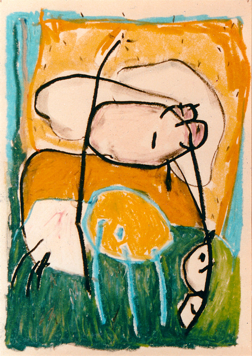Oil pastel, pencil on paper
