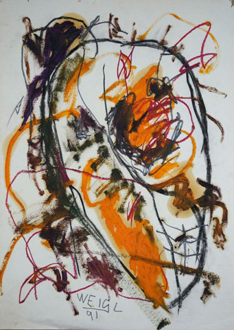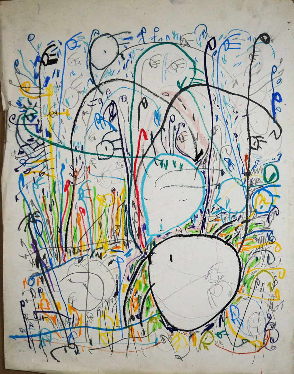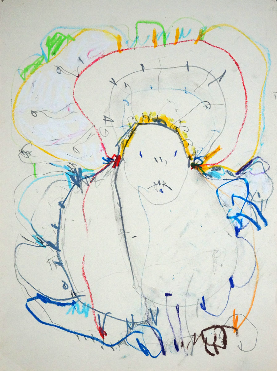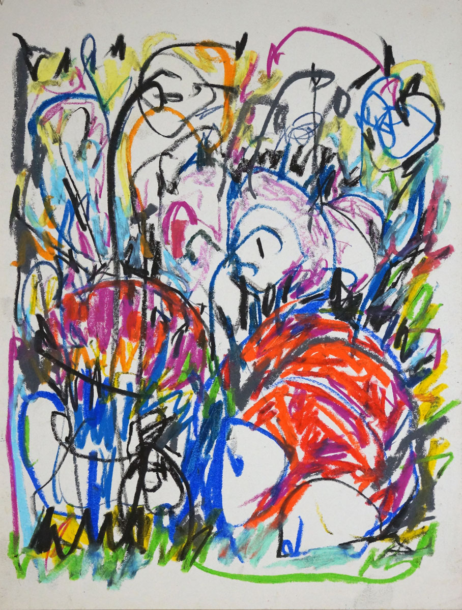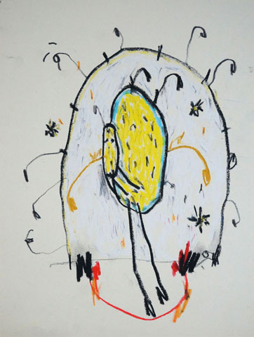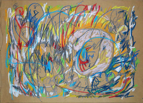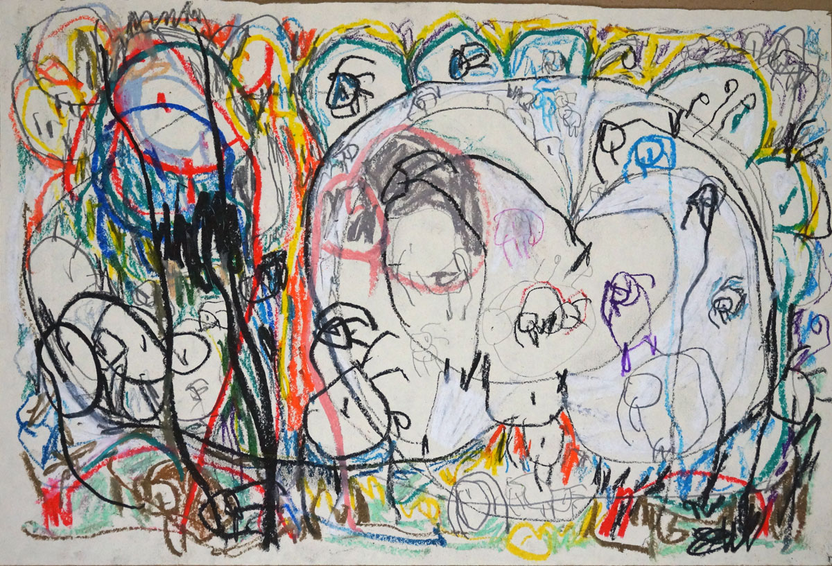 Oil pastel, pencil on paper
