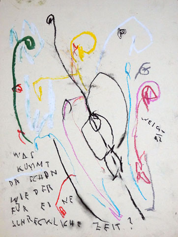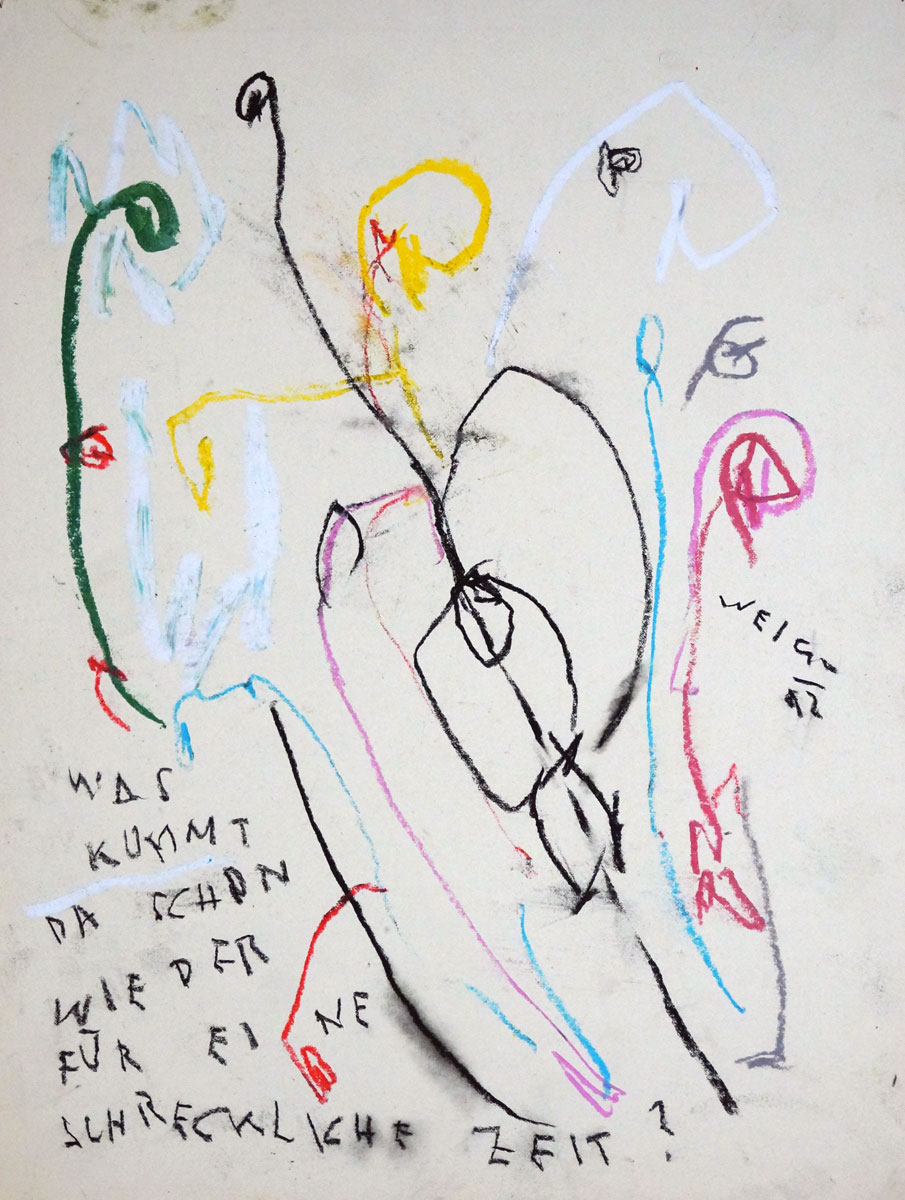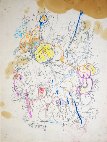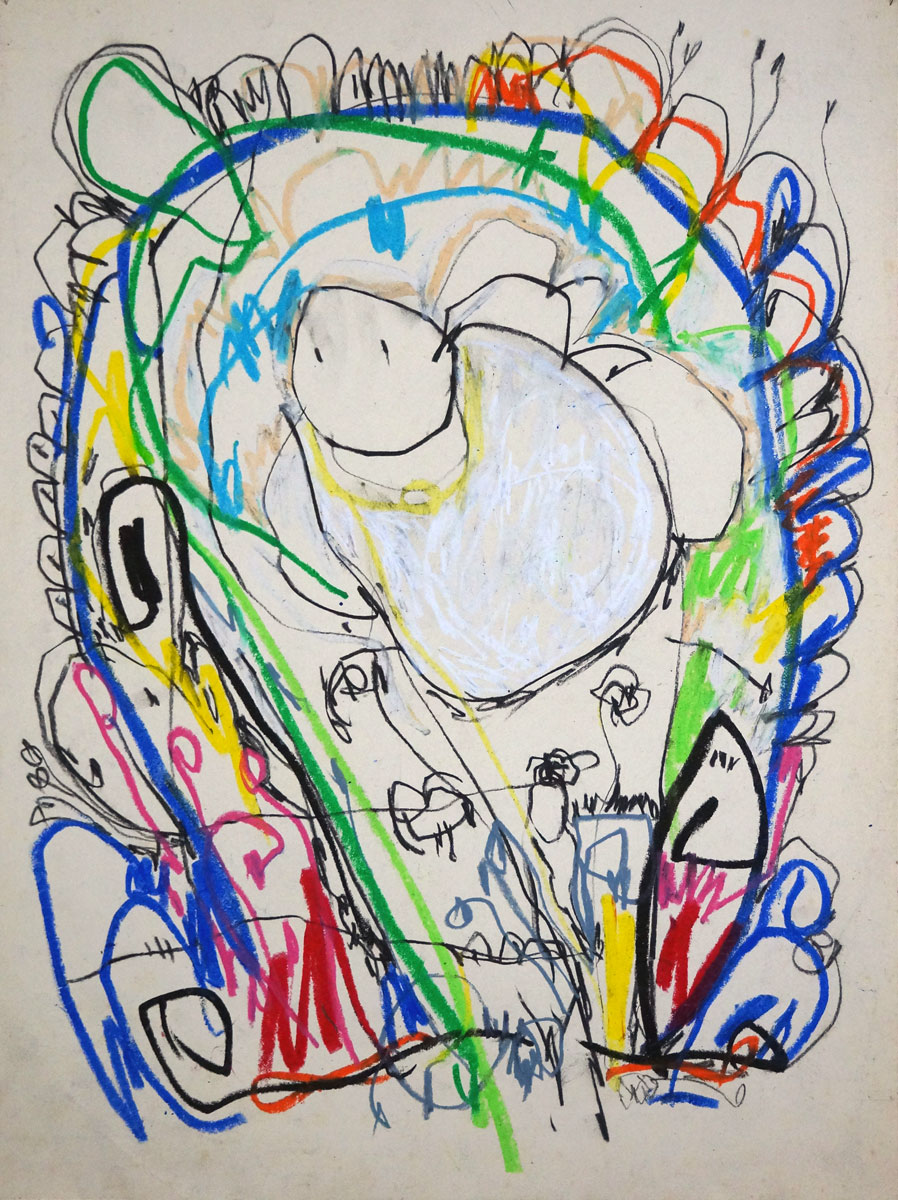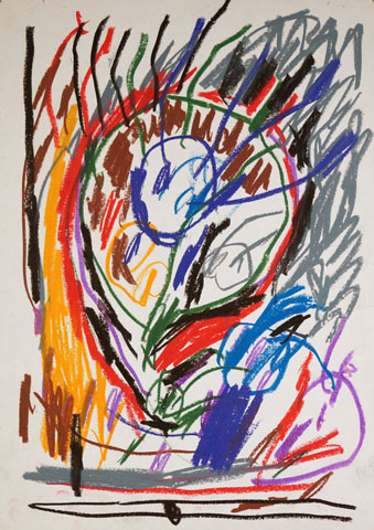 Oil pastel, gouache on paper