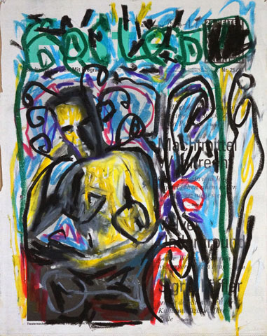 Oil pastel on newspaper