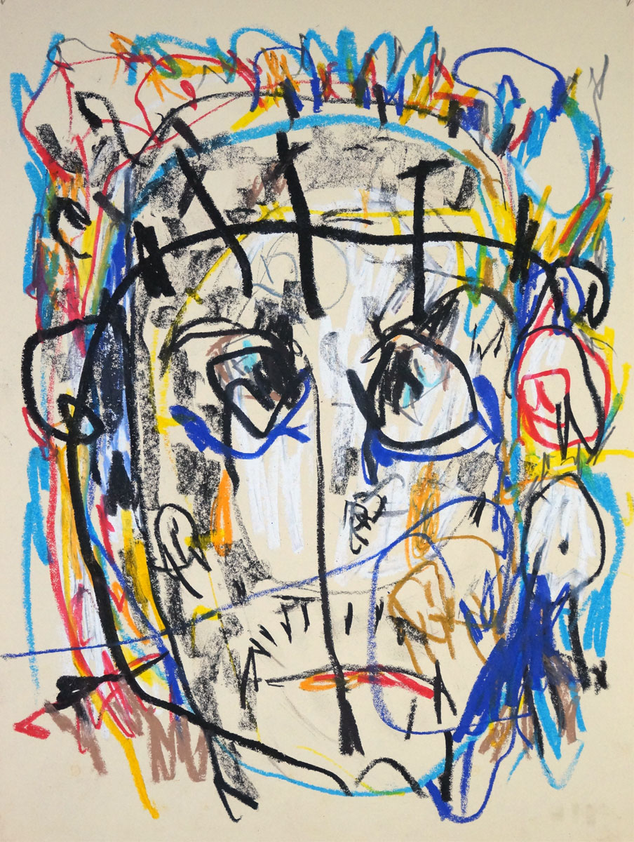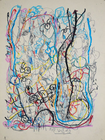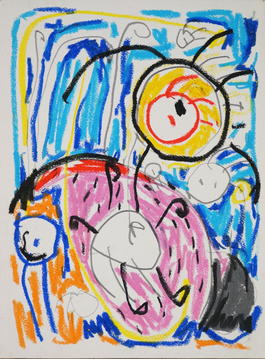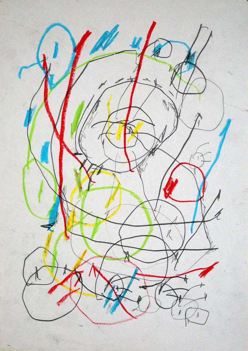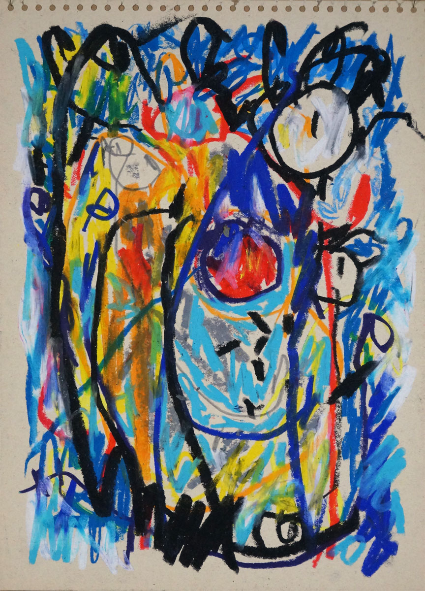 Oil pastel, pencil, water colour on paper