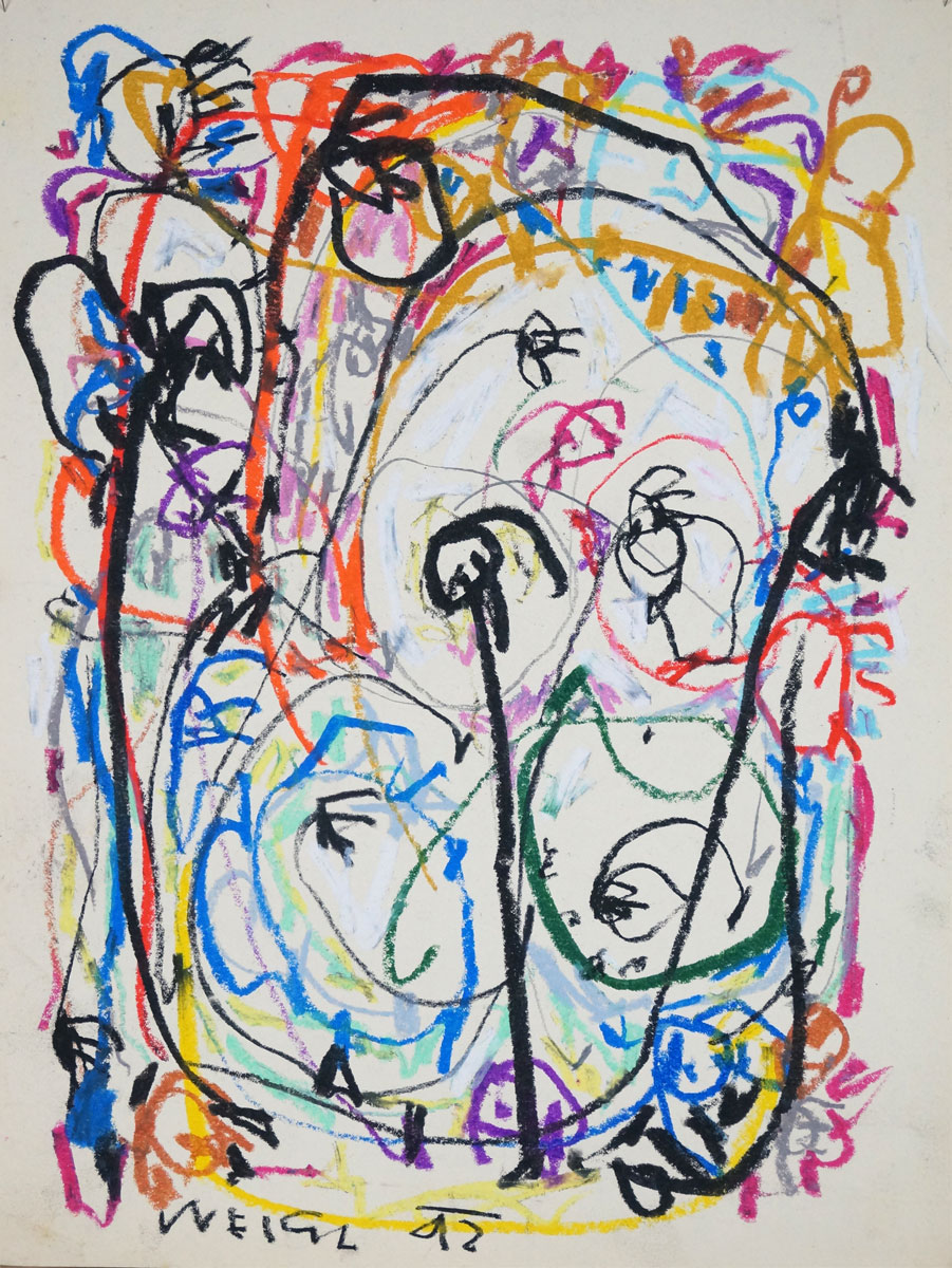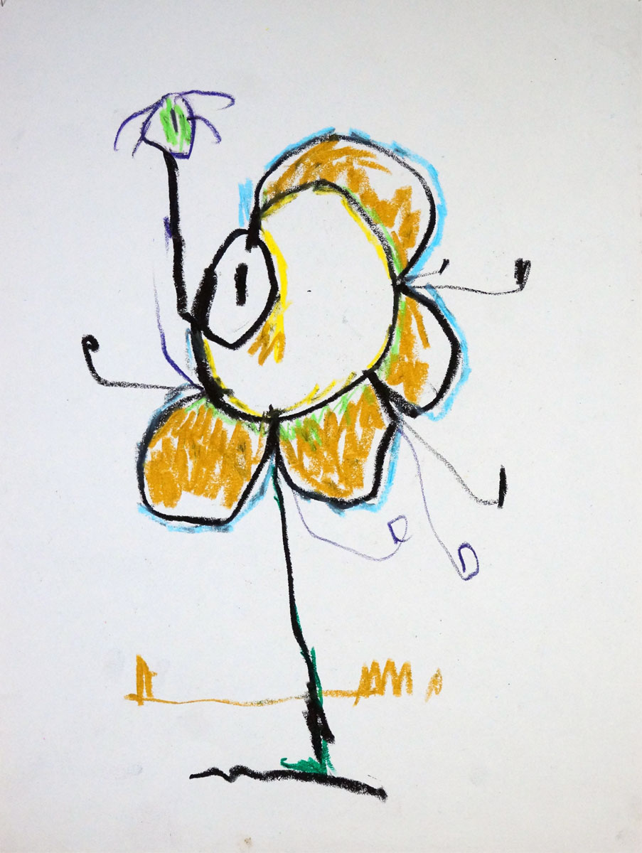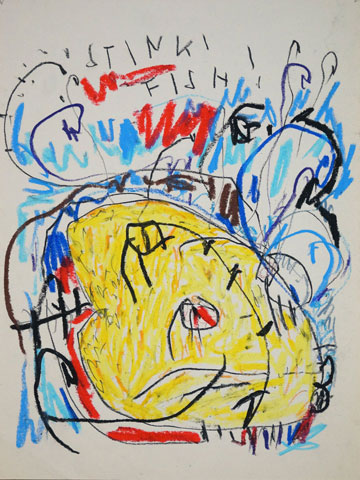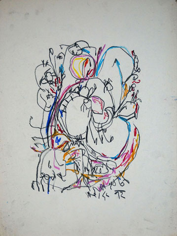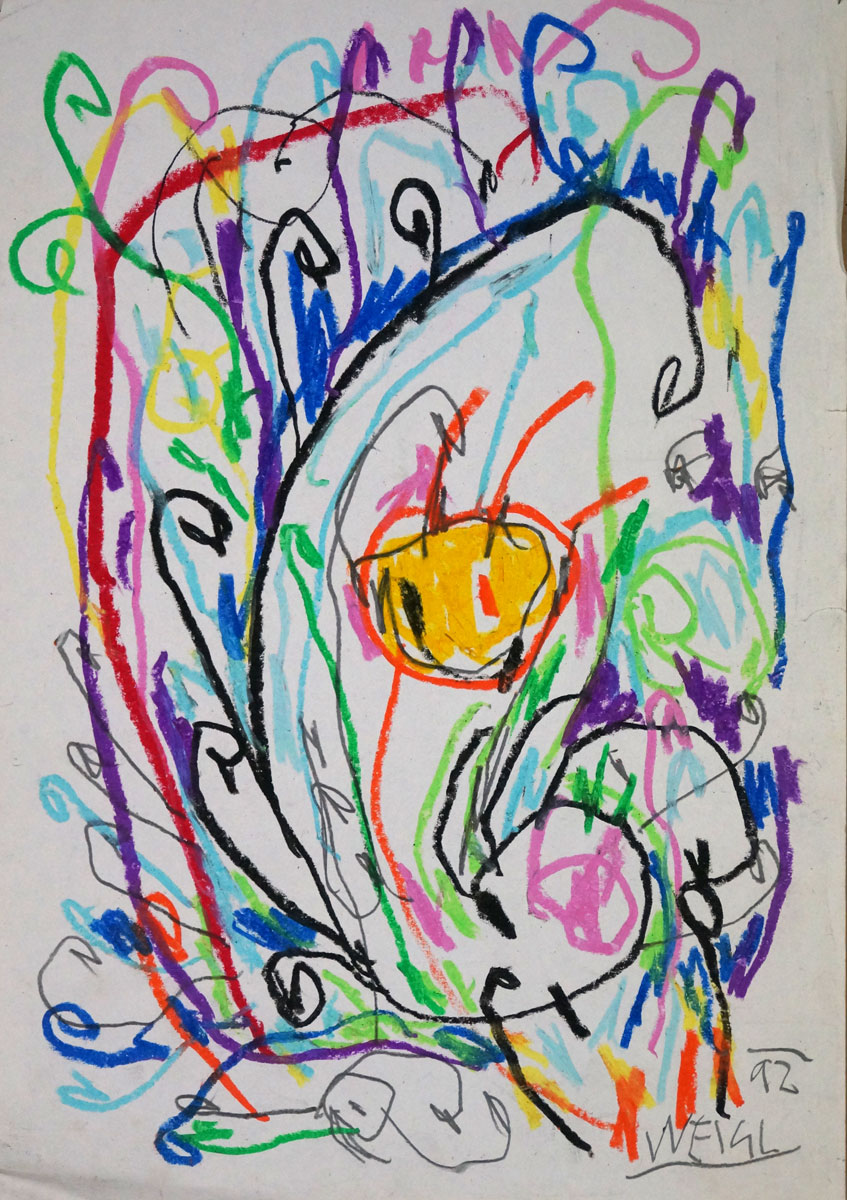 Oil pastel, pencil, water colour on paper