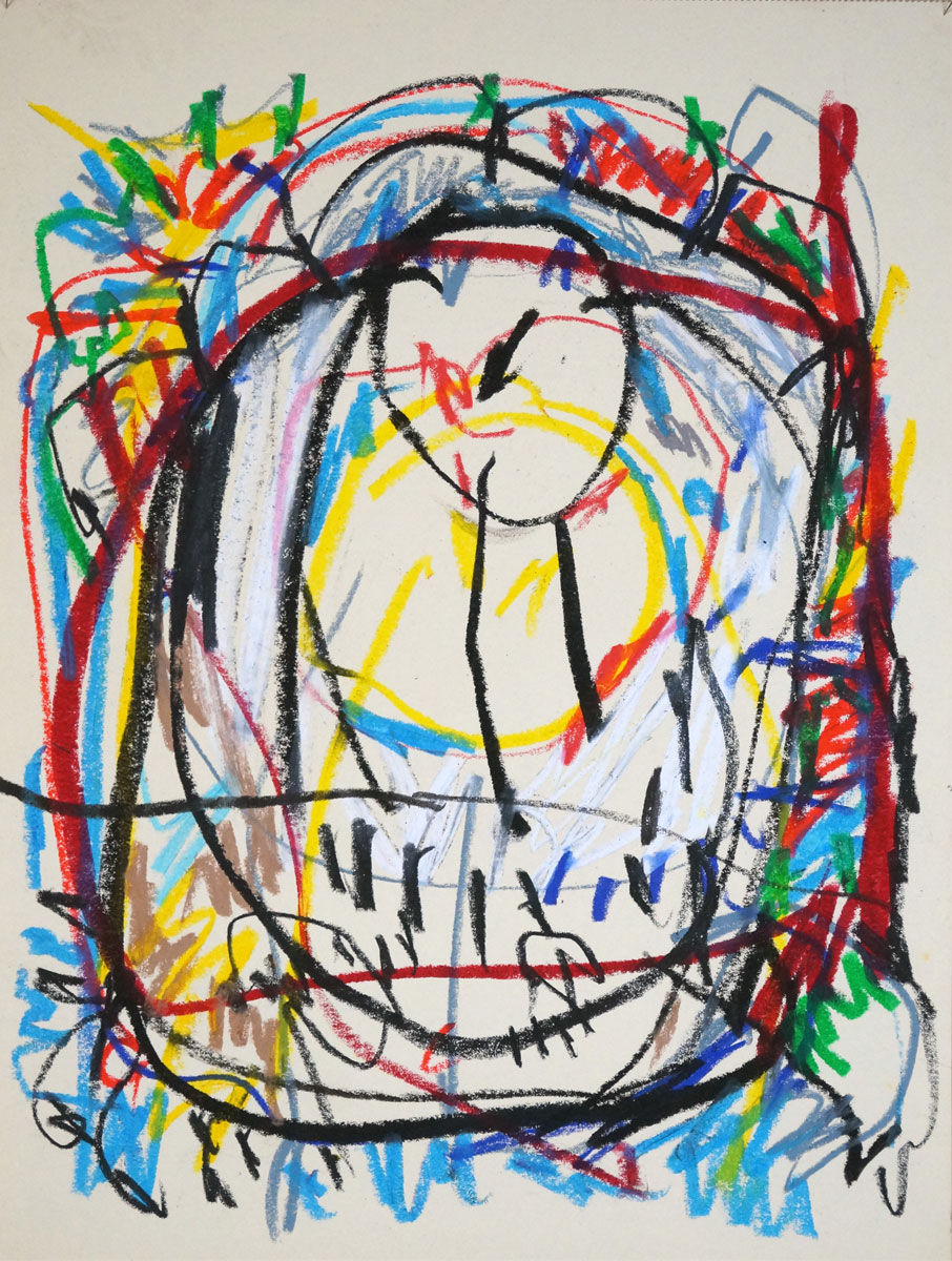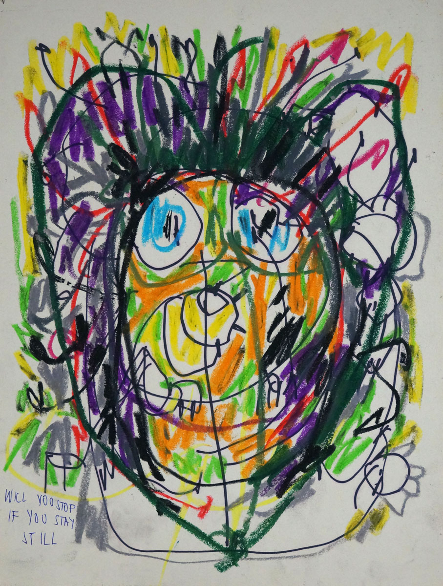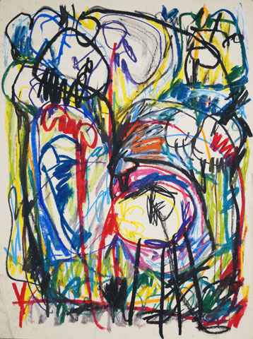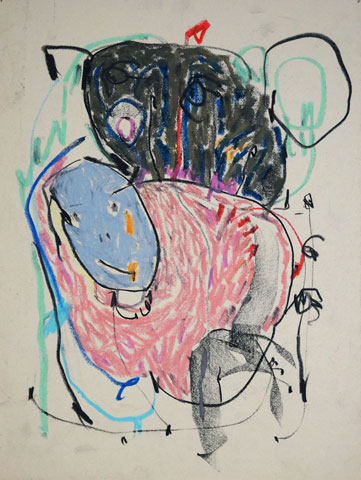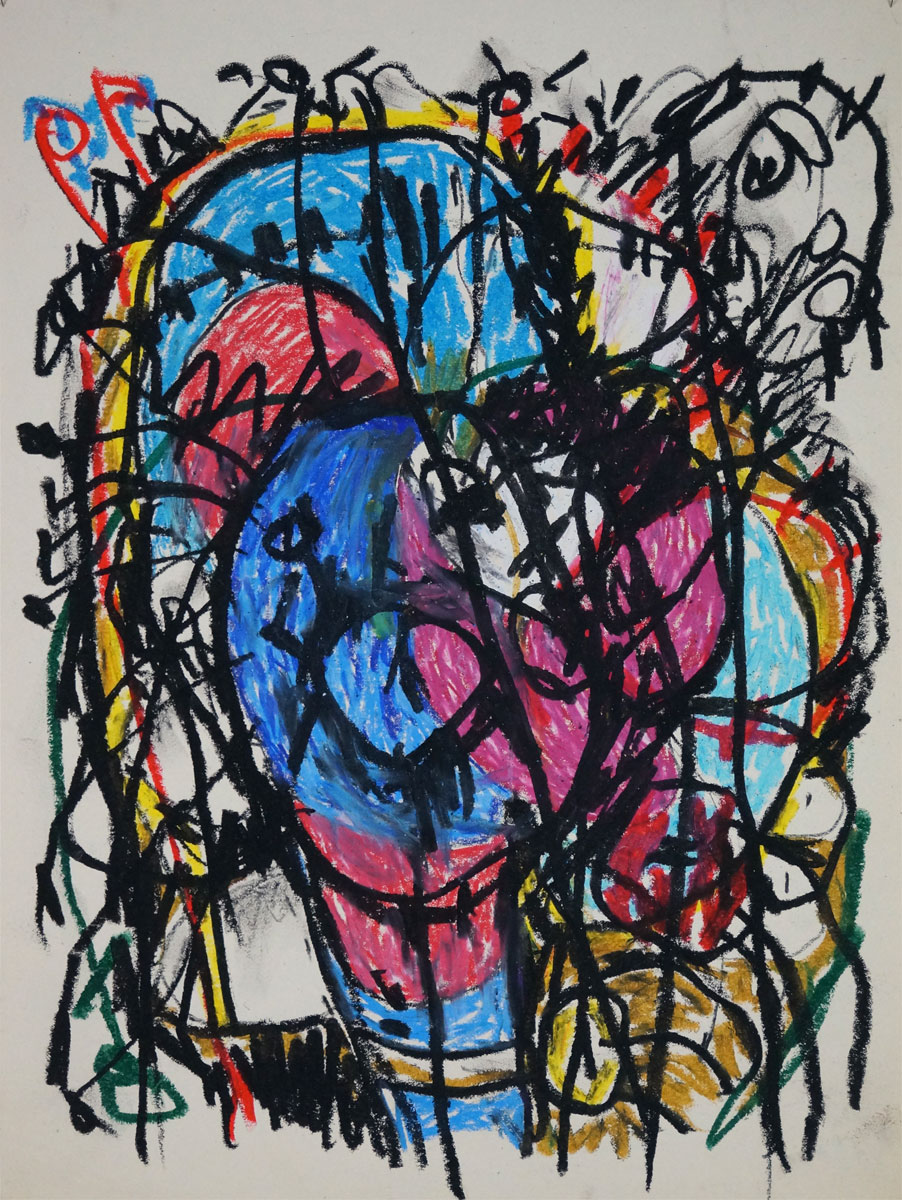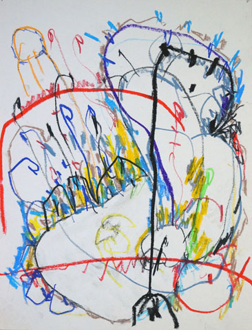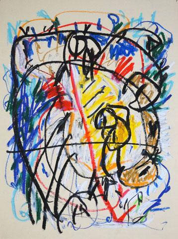 Oil pastel, pencil on paper