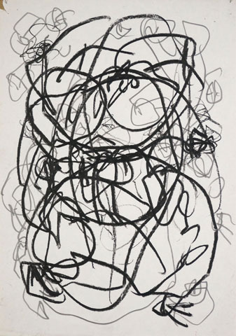 Oil pastel, ink pen on paper